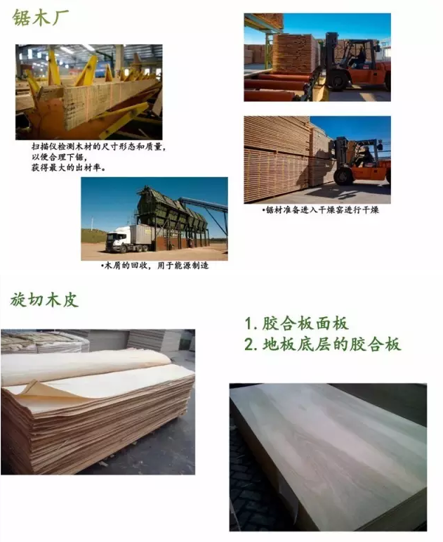 這樣一根原木樹干就被加工成各種產(chǎn)品,主要部分分割成不同規(guī)格的木材或切割木皮,次要的回收利用,例如做成指接板之類的產(chǎn)品。