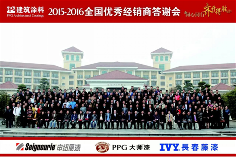 2016年2月底,PPG建筑涂料中國(guó)區(qū)上海總部舉行了盛大的2015-2016全國(guó)優(yōu)秀經(jīng)銷商答謝會(huì),來自全國(guó)的200多位優(yōu)秀經(jīng)銷商代表齊聚一堂,其中力誠(chéng)建材賴總也到場(chǎng)出席,共同見證了此次盛會(huì)。