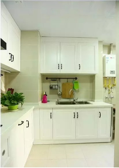 2.如果廚房比較小,吊柜又全部做到頂了,并且還很高,實際上你進廚房的空間感是很差的,會感覺到比較壓抑。有些人說我看見照片上的沒有這個問題啊?呵呵,那是照片,對于一般的廚房來說,櫥柜冰箱一站位,剩下的空間才2,3個平方,還要站2個人,自己想一想實際空間感是什么樣的。